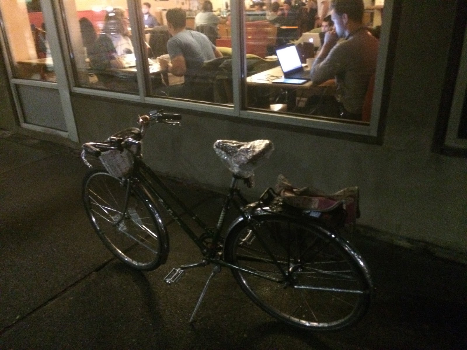 Ride two of week two was fifteen miles long in all, and pretty dang damp. I started at home, as usual, and rode five miles to work. From there, I rode to the Ride With GPS headquarters for the WTF bike industry happy hour. WTF doesn't stand for what you think it does, it means Women-Trans-Femme. It was early and there was just a small but rowdy bunch there.